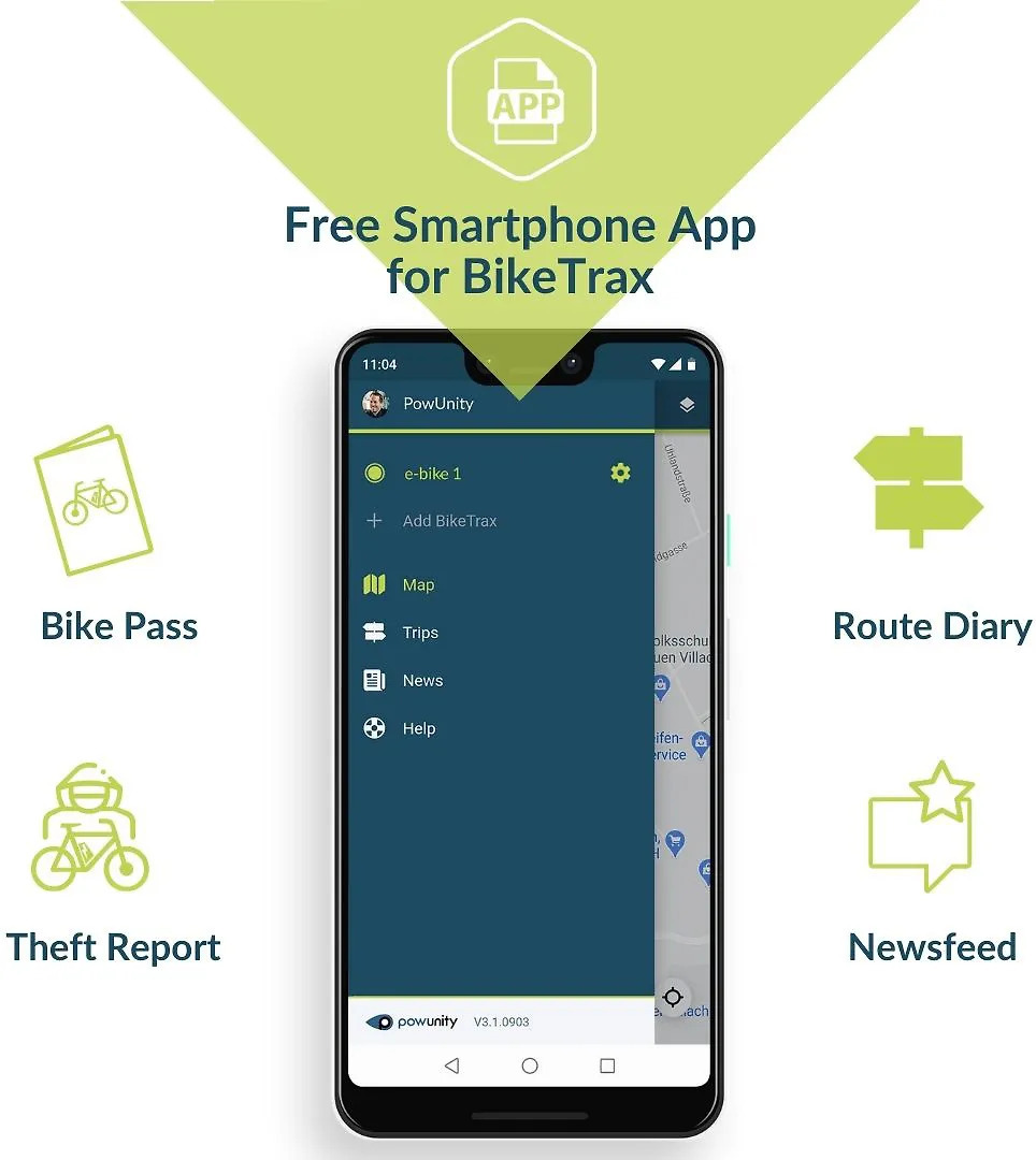 PowUnity BikeTrax locksmith with anti-theft GPS bicycle tracking. The locator mounts inside the bike, making it invisible to thieves. GPS tracking indoors and outdoors using Europe's most robust mobile phone network. Instant alert and push message whenever your bike is moved without your permission.