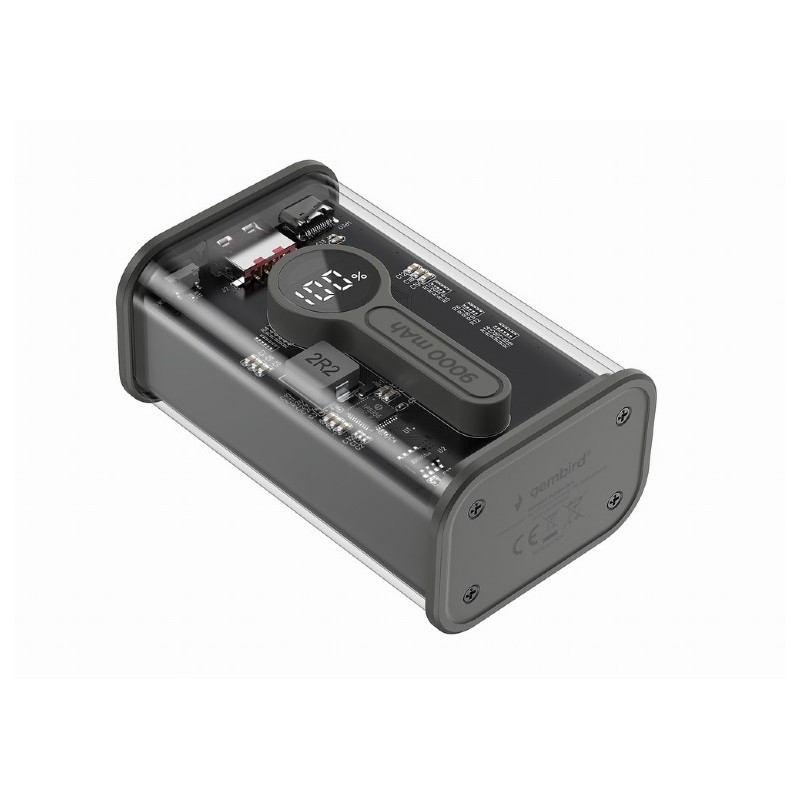 Gembird | Läbipaistev QC3.0 Kiirelaadimine Power Bank | PB09-TQC3-01 | 9000 mAh | Must