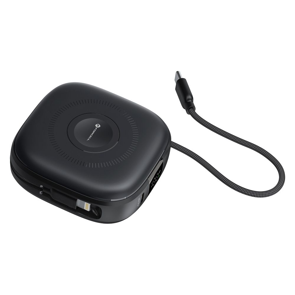 Energiamasin, mis on MagSafe Forcell F-Energy F10K5 PD3.1 QC3.0 3A 22,5W 10000 mAh kompatiibne, on ka Apple Watchi kompatiibne, must