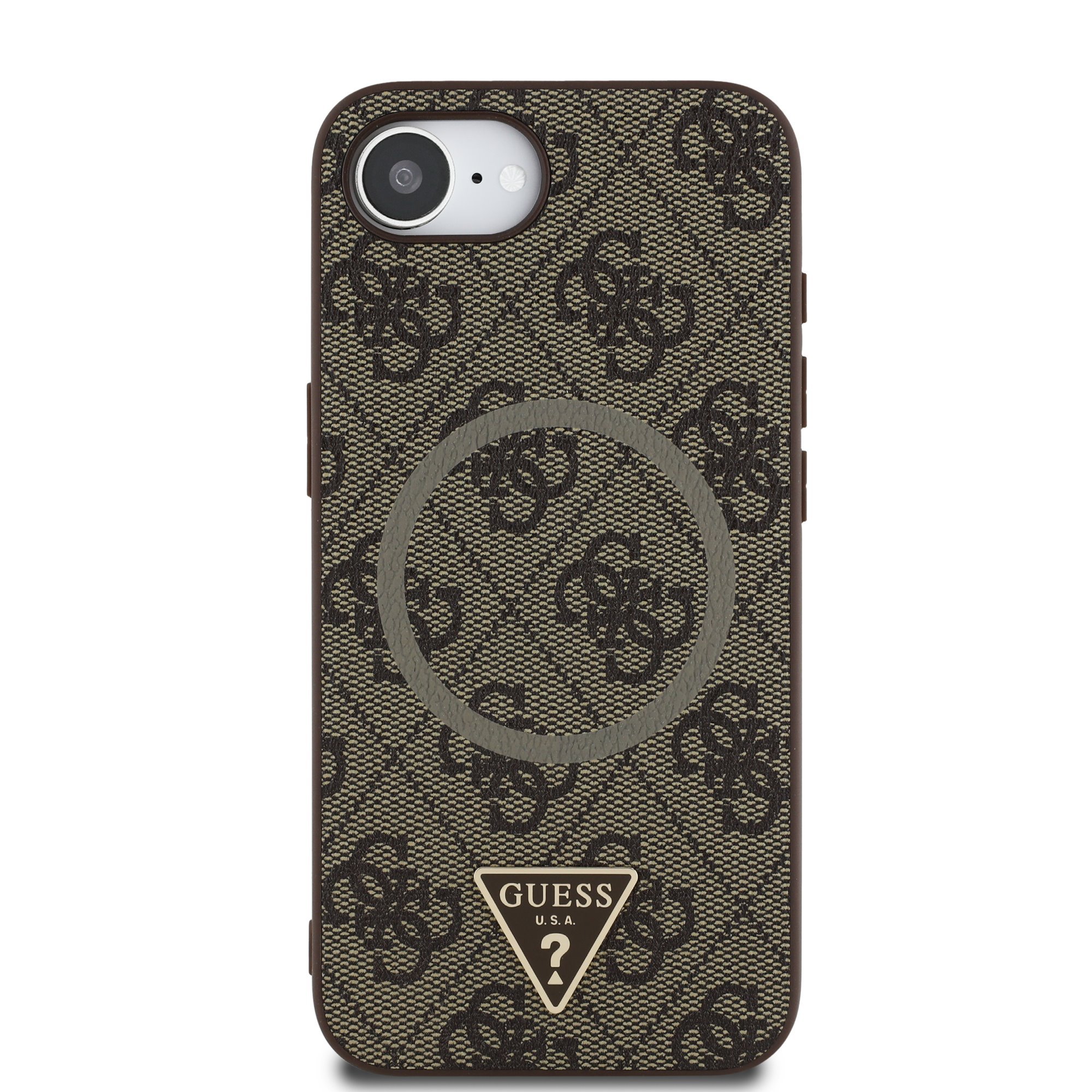 The premium back cover Guess PU 4G Strass Triangle Metal Logo features an elegant, characteristic 4G pattern, complemented by a golden triangle GUESS logo.The cover is made of flexible and durable PU material with a PU leather finish, offering not only great protection for the phone, but also comfort in use.This finish ensures a firm grip, minimizing the risk of the phone slipping out of your hand.Thanks to its precise shape, it fits perfectly on the phone and allows easy access to all buttons and connectors.This premium cover is a great offer for people who value not only an exclusive look in fashion, but also high quality and functionality.It is an essential accessory for anyone looking for a combination of elegance and prestige.Key features:- Original Guess- Metal triangular Guess logo on the back.- Lightweight and durable PU and PU leather cover- Fits perfectly in your hand and does not slip- Precisely copies the shape of the phone and allows easy access to buttons and connectors.- Protects the phone from dust and scratches- A luxurious accessory for your phone and outfit