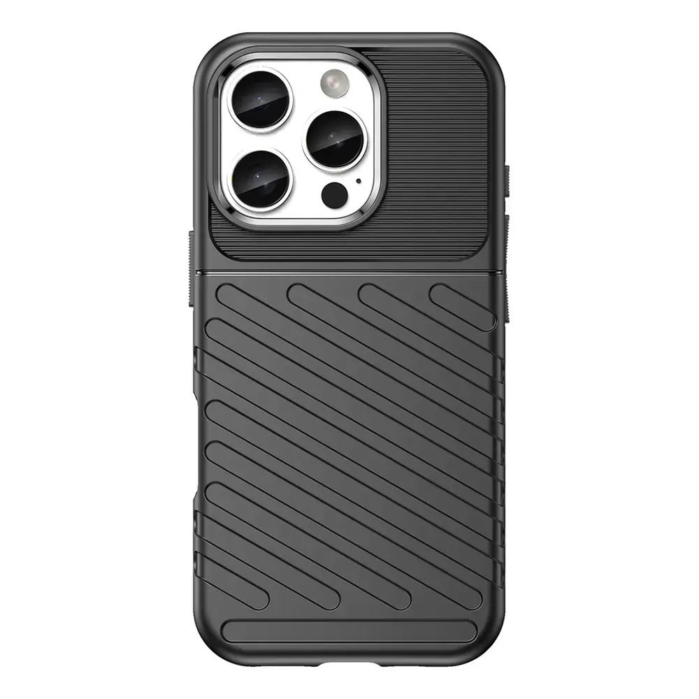 Thunder Case for iPhone 16 Pro Silicone Case - Black Discover exceptional protection for your iPhone 16 Pro with the Thunder Case silicone case. This case was created with your comfort and safety in mind. Made of high-quality TPU material, it provides unparalleled protection against damage, while being lightweight and comfortable in everyday use. Precise cutouts guarantee full access to all phone functions, and the perfect fit makes your iPhone 16 Pro always look stylish. Choose Thunder Case and enjoy peace of mind, knowing that your phone is in the best hands! Specification: Series: Thunder Case Material: TPU Compatibility: iPhone 16 Pro The most important advantages of the Thunder Case silicone case: Protection against damage: Thunder Case effectively protects your phone against falls, scratches and everyday damage. Perfect fit: The case is precisely fitted to the shape of the iPhone 16 Pro, maintaining its elegant appearance and functionality. Light and comfortable: Made of lightweight TPU material, the case is extremely comfortable to use and does not weigh down the phone. Precise cutouts: They guarantee easy access to all ports, buttons and camera, without limiting the functionality of the phone. Protection against damage at the highest level Thunder Case is designed to provide maximum protection for your iPhone 16 Pro from damage. The use of high-quality TPU material makes the case perfectly absorb shocks, protecting your phone from the effects of falls and scratches. Thanks to this, you can enjoy peace of mind, knowing that your phone is safe in every situation. Perfect fit that preserves the elegance of your phone The precise workmanship of the Thunder Case guarantees that it fits perfectly to the iPhone 16 Pro, maintaining its slim profile and aesthetics. Thanks to this, the case not only protects your phone, but also highlights its modern design, providing a stylish look for everyday. Light and comfortable for everyday use Thanks to the use of lightweight TPU material, the Thunder Case is not only durable, but also extremely comfortable in everyday use. Its smooth surface makes the phone lie securely in the hand, while not increasing its weight, which is important for users who value comfort. Precise cutouts for full functionality Thunder Case is equipped with precisely made cutouts that allow free access to all ports, buttons and camera. You do not have to take off the case to use the phone functions - all elements are easily accessible, which increases the comfort of use and ensures full functionality of the device.