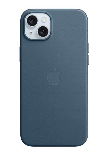Fine Weave Case iPhone 15 Plus with MagSafe The Fine Weave Case with MagSafe was specially developed by Apple for your iPhone 15 and offers not only protection but also stylish design. Made from robust fine twill material, this case feels soft and suede-like. We've also considered the environmental impact in its development - it's made from 68 per cent recycled materials from consumers, which helps to significantly reduce CO2 emissions compared to leather. The case is easy to attach to the iPhone and adapts perfectly to the shape of your iPhone without adding extra bulk. Thanks to the integrated magnets, which are precisely aligned with the iPhone 15, the case holds securely and enables fast wireless charging. So you can leave your iPhone in the case while charging and simply connect your MagSafe charger or place it on a Qi-certified charger. Like all cases developed by Apple, this product undergoes extensive testing to ensure that it not only looks great, but also protects your iPhone from scratches and drops. Please note that the high-quality fine mesh case may show slight signs of wear over time, especially when using MagSafe accessories, which can leave slight marks. If you want to avoid this, we recommend using an iPhone 15 silicone case or a clear case. Colour: Pacific blue Compatibility: iPhone 15 Plus Scope of delivery: iPhone 15 Plus fine mesh case with MagSafe