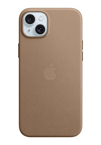 Fine Weave Case iPhone 15 Plus with MagSafe The Fine Weave Case with MagSafe was specially developed by Apple for your iPhone 15 and offers not only protection but also stylish design. Made from robust fine twill material, this case feels soft and suede-like. We've also considered the environmental impact in its development - it's made from 68 per cent recycled materials from consumers, which helps to significantly reduce CO2 emissions compared to leather. The case is easy to attach to the iPhone and adapts perfectly to the shape of your iPhone without adding extra bulk. Thanks to the integrated magnets, which are precisely aligned with the iPhone 15, the case holds securely and enables fast wireless charging. So you can leave your iPhone in the case while charging and simply connect your MagSafe charger or place it on a Qi-certified charger. Like all cases developed by Apple, this product undergoes extensive testing to ensure that it not only looks great, but also protects your iPhone from scratches and drops. Please note that the high-quality fine mesh case may show slight signs of wear over time, especially when using MagSafe accessories, which can leave slight marks. If you want to avoid this, we recommend using an iPhone 15 silicone case or a clear case. Colour: Taupe Compatibility: iPhone 15 Plus Scope of delivery: iPhone 15 Plus Fine Fabric Case with MagSafe