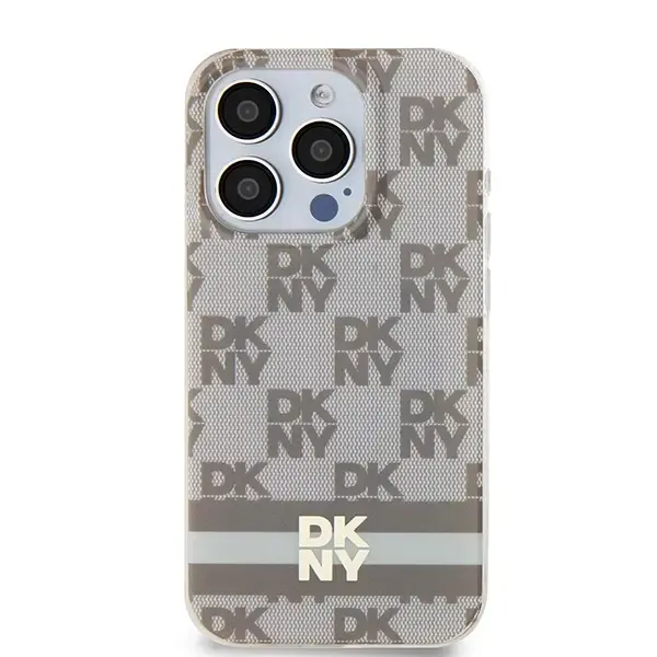 DKNY IML ruuduline ühevärviline muster ja trükitud triibud MagSafe'iga iPhone 15 Pro Max'i ümbris - beige (DK000183-0)