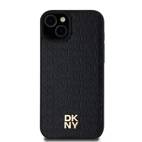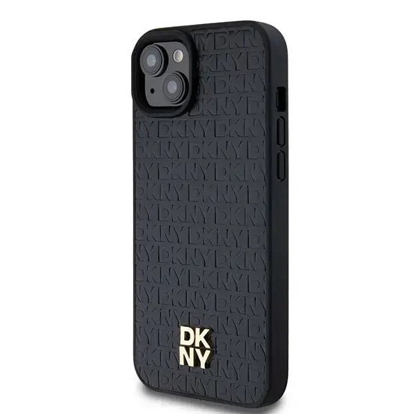 DKNY Nahast monogramm-mustriga metallist logo, MagSafe ümbris iPhone'ile 15 Plus | 14 Plus - must (DK000086-0)
