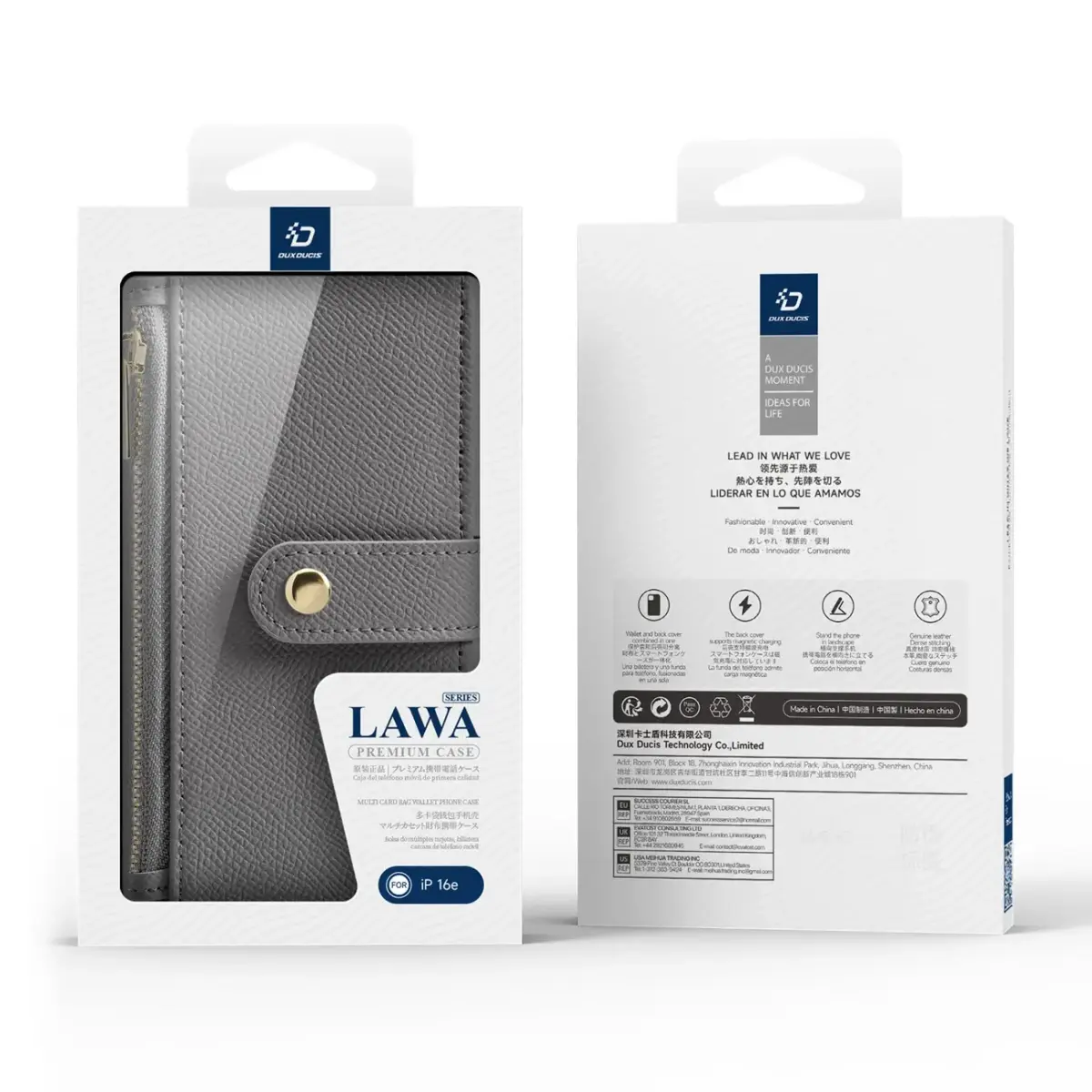 Dux Ducis Lawa iPhone 16e Case - Gray Add style and functionality to your smartphone with the Dux Ducis Lawa Wallet Leather Case with Detachable Magnetic Wallet. This premium accessory made of durable materials offers an elegant look and unparalleled protection. The built-in wallet with a zipper allows you to safely store your essentials, such as credit cards and cash. The magnetic construction ensures convenient use, allowing for quick detachment and attachment. With precise cutouts and a modern design, this case is a perfect combination of classic design and modern functionality. Give your device a sophisticated look today! ~ Specification: Brand: Dux Ducis Model: Dux Ducis Lava Material: leather, TPU Compatibility: iPhone 16e Color: gray ~ The most important advantages of the Dux Ducis Lawa leather case: Elegant design: Made of high-quality materials, the case stands out for its luxurious appearance and durability. Detachable wallet: Built-in zippered wallet provides convenient storage for cards, cash, and other small items. Magnetic Functionality: Magnetic design makes it easy to attach and detach, adapting to your needs. All-round protection: Protects your device from scratches, dust and minor impacts. Precise workmanship: Accurate cutouts allow easy access to all ports and buttons. ~ Stylish and durable leather The case is made of the highest quality materials that not only look luxurious, but also ensure durability and resistance to everyday use. Detachable magnetic wallet The zippered wallet allows you to store essentials like cards and cash conveniently and safely. The magnetic mechanism allows you to quickly detach it when you need it. MagSafe compatible The case supports MagSafe technology, which means you can easily use magnetic accessories and chargers without having to remove the case. Modern design with precise cutouts Every detail has been carefully designed to ensure comfort of use. Precise cutouts guarantee access to all functions of your device. Protection and style in one The case not only protects the device, but also adds class and elegance to it, emphasizing its unique character.