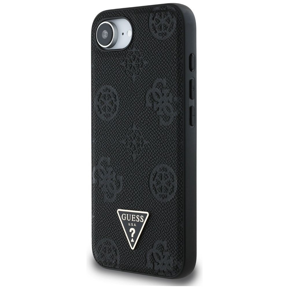 GUESS case for IPHONE 16e (SE 4 2025) compatible with MagSafe GUHMPSE4PGBTMK (Grained PU Hot Stamp Peony Triangle Logo) black