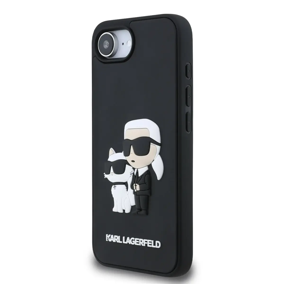 Karl Lagerfeld 3D-kummaline Karl ja Choupette iPhone'i 16e telefoniümbris must (KLHCPSE43DRKCNK)
