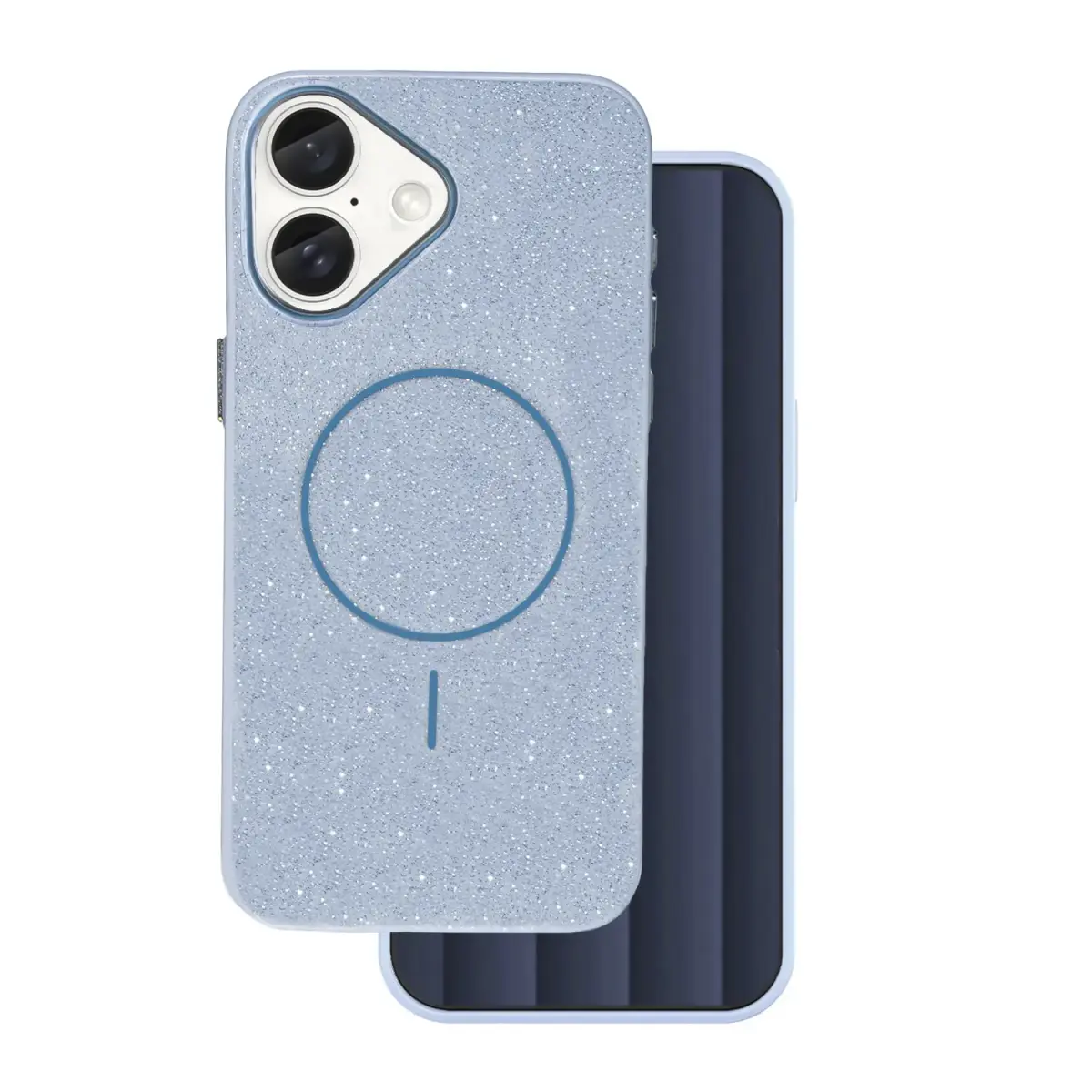 The Glitter Thin Mag cover is an elegant and durable phone protection. Made of TPU and PC, it protects against drops and scratches while maintaining a slim profile (2 mm). The built-in magnet (2300 Gs) ensures compatibility with MagSafe, allowing for fast charging and use with accessories. The sparkling glitter finish is long-lasting, and the metal buttons guarantee precise response. The cover offers camera protection, practical openings for a strap, and various color options and models.