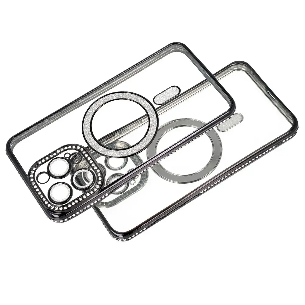 Bling MagSafe Case - a stylish case combining functionality and elegance. Made from flexible TPU, it provides full protection for your smartphone. Built-in magnets make it compatible with Apple MagSafe accessories. Made from flexible TPU Full protection against scratches and drops Magnetic ring compatible with MagSafe accessories Borders and camera island adorned with sparkling rhinestones MagSafe element and camera island covered with shimmering glitter Built-in protective glass for camera lenses Raised edges for extra screen protection Lanyard attachment for added convenience Precise cutouts ensure easy access to all ports Integrated buttons to keep out dust and debris Anti-slip material for a secure grip