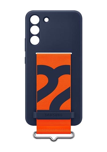 Silicone Cover with Strap With this accessory, you can get more out of your S22+. Protection that also looks really good The supple, elegant Silicone Cover with Strap feels good and is extremely secure in the hand thanks to the strap on the back. And of course you can change the colour of the strap to try out a new style. Strap it on Hold and scroll single-handedly. The wide, elegant strap is attached to the back of your phone so you can hold it securely and effortlessly. Smooth to the touch The form-fitting case is smooth to the touch and comfortable to hold. It has a stylish matte look that looks as good as it feels. Change the look Want more creative freedom? Swap out the detachable strap for one of the many available designs to better express your personal style. Colour Navy Blue