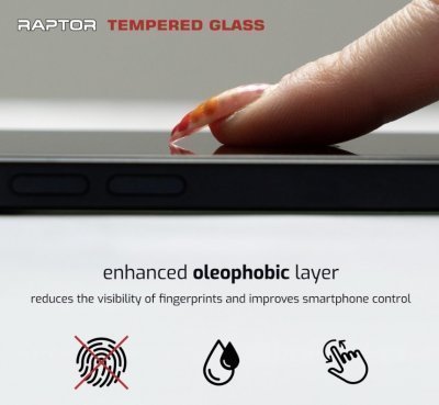 Swissten Raptor perfectly clear tempered glass from the "Case Friendly" category with hardened, rounded edges, oleophobic antibacterial coating and diamond strength. Packaged in a SWISSTEN blister pack. Maximum protection Protective tempered glass with diamond strength protects your smartphone screen from scratches and minor to medium-sized drops. The edges of the glass have extremely hardened rounded edges, which significantly increases the resistance when the smartphone falls on the edge of the display, but also extends the life of the glass itself. Design The Swissten Raptor protective tempered glass stands out for its absolute clear transparency, which does not affect the display's color rendering. Equally attractive is the ultra-thin design that does not interfere with the appearance of the smartphone. And last but not least, the optimal size of the glass from the "Case friendly" category gives the glass the possibility of combining with most cases without causing bubbles around the perimeter. Easy bonding with ESD coating ESD (Electrostatic discharge) is the best fully adhesive coating that does not attract dust from the environment. The coating makes the installation process easier and faster and also reduces the likelihood of dust and other small elements between the glass and the display. The Swissten Raptor glass package also includes a kit for easy application of the glass to your smartphone. A damp cloth to degrease and remove dirt from the smartphone display along with a dry cloth will perfectly clean the display and prepare it for easy adhesion. And stickers to remove dust particles in case they get under the bonded glass. Thanks to the Swissten Raptor ESD glass adhesive layer and cleaning kit, the glass can be glued beautifully without bubbles. In addition, the silicone adhesive layer reduces the visibility of any scratches on the used smartphone. Oleophobic and antibacterial surface The oleophobic coating with antibacterial properties will significantly reduce unwanted fingerprints on the smartphone display and can successfully destroy up to 99.9% of all bacteria.