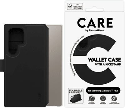 The CARE by PanzerGlass Feature Case Kickstand offers a versatile stand function that allows the smartphone to be positioned both vertically and horizontally. The kickstand can be folded out and adjusted 360 degrees to ensure the perfect viewing angle. The case also offers high-performance protection and is made from recycled plastic.Features Versatile stand function - vertical and horizontalPowerful protectionFoldable aluminium stand -adjustable up to 360 degreesMade from recycled plasticTechnical data Manufacturer Panzerglass Compatibility Samsung Galaxy S25 Ultra Scope of delivery Protective cover with integrated stand function Material plastic Product type Back cover Product colour black