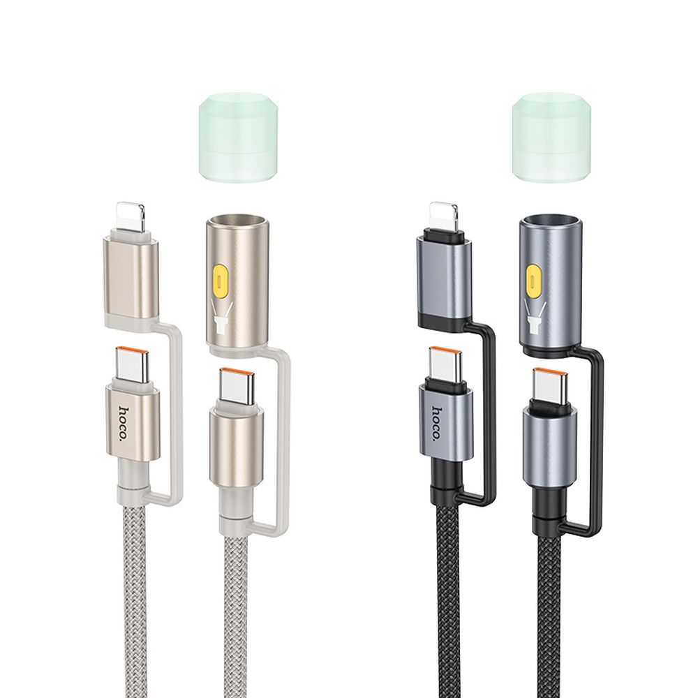 Kabel USB C / Lightning USB C / LED valgus Hoco PD 3A 60W 1,2 m U138 must ```
