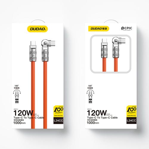 Angled cable USB C - USB C 120W 1m rotation 180° Dudao - orangeDUDAO L24CC 120W USB-C - USB-C Cable. Cable length: 1 m, Connector 1: USB C, Connector 2: USB C, Product colour: Orange