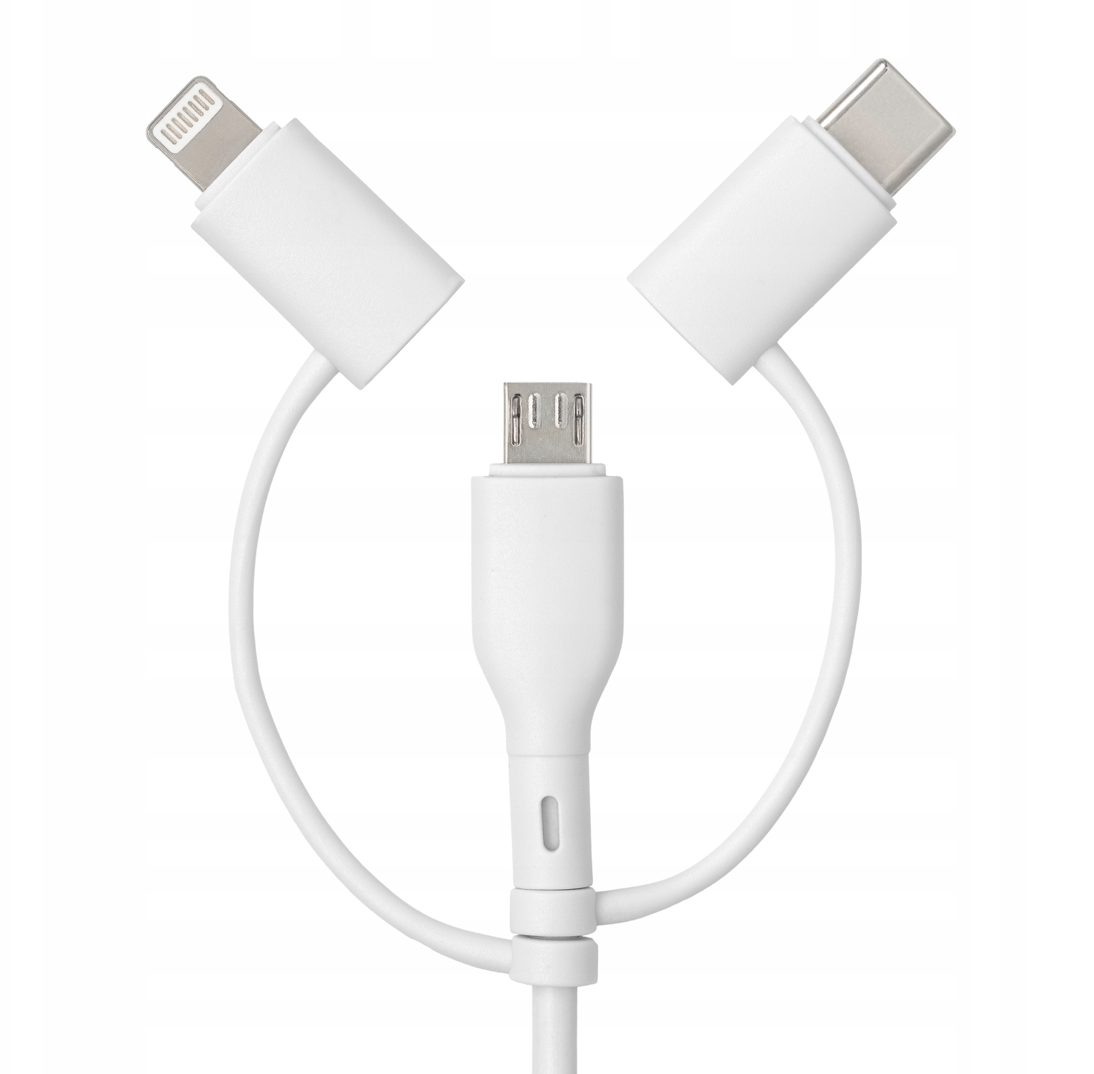 Qualo QRC-CA+M+L-00 kabel 3in1 USB-C - USB-A / microUSB + USB adapter / 1,5m / 60W / valge