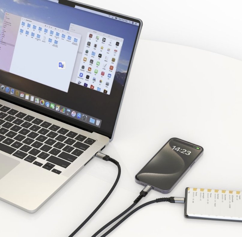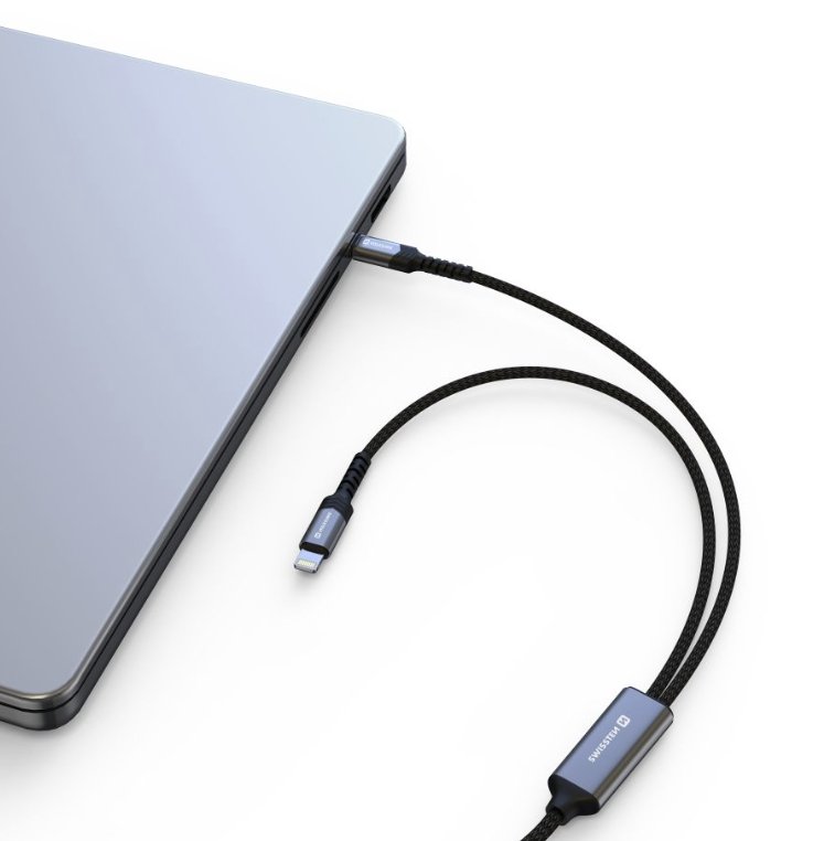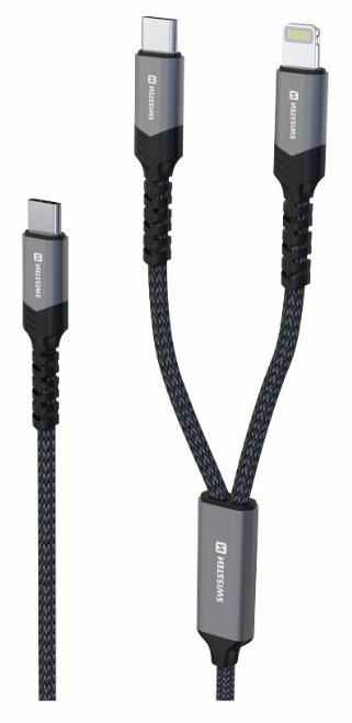 SWISSTEN 2-in-1 laadimiskaabel USB-C / USB-C + Lightning 100W 1,5m on ideaalne valik mobiiltelefonide, tahvlite ja sülearvutite kiireks ja tõhusaks laadimiseks. Toetades kuni 100W energiatarne, pakub see piisavalt energiat isegi nõudjatele seadmetele. Kui mõlemad ühendused on pistikus, jaotub energia nutikalt seadmete vahel – USB-C toetab kuni 54W ja Lightning kuni 19,8W, mis tagab mugava ja ohutu mitme seadme laadimise. Vastav tekstiline punumine tagab pika kasutusaja ja kaitse kahjustuste eest.