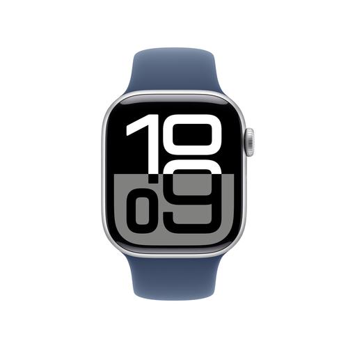 Thinstant classic.Apple Watch Series 10 GPS 42mm Silver Aluminium Case with Denim Sport Band - M/L. Display technology: OLED, Display resolution: 374 x 446 pixels, Touchscreen. Flash memory: 64 GB. Wi-Fi. GPS (satellite). Weight: 30 g. Waterproof up to: 50 m, Band material: Rubber, Band colour: Blue, Band size: M/L. Operating system installed: watchOS 11