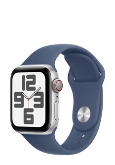 Apple Watch SE The Apple Watch SE combines powerful functions and an elegant design. With a robust aluminium case in the colours midnight, polar star and silver, it is perfect for everyday use. Display & Design The Retina LTPO OLED display with Ion-X front glass offers clear, bright displays with up to 1,000 nits of brightness. Available in two sizes (40 mm and 44 mm), the Apple Watch SE is lightweight and comfortable, ideal for any wrist. Health & Fitness With a 2nd generation optical heart sensor, sleep tracking, heart rate notifications and a mindfulness app, the Watch SE actively supports you in staying healthy. It also offers extensive training modes, from running and cycling to swimming and yoga. Performance & Connectivity Powered by the S8 SiP chip with 64-bit dual-core processor and 32 GB of memory, the Apple Watch SE is fast and efficient. It has GPS, Bluetooth 5.3 and cellular options to keep you connected without an iPhone. Compatible with: iPhone Xs or newer with iOS 18 or newer Colour Case: Silver Aluminium case, Denim Sport Band Scope of delivery: Apple Watch SE Sport Band M/L Apple Watch Magnetic charger to USB-C cable (1 m)
