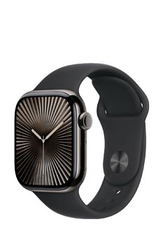 Apple Watch Series 10 GPS + Cellular A gigantic display in the thinnest design The Apple Watch Series 10 impresses with the largest and most advanced display Apple has ever offered on a watch. The brilliant OLED display with a wide viewing angle shows more information than ever before and makes it easier to read, even from oblique viewing angles. At the same time, the Series 10 is the thinnest Apple Watch ever, a masterpiece of technology that perfectly combines elegance and function. Powerful health features The Series 10 is more than just a smartwatch - it's your daily health companion. With innovative functions such as sleep apnoea notifications, it helps you to recognise health problems at an early stage. The ECG sensor allows you to take an ECG directly on your wrist and continuously monitors your heart health. For your activities in the water, new sensors are integrated that measure water depth and temperature - perfect for swimmers and divers. Fast charging and long-lasting battery No more long charging times: The Apple Watch Series 10 reaches 80% battery in just 30 minutes. So you're always ready to go again quickly, whether you need it for an intensive workout or a long day on the go. Exclusive materials and colours For a timeless look, the Series 10 is available for the first time in diamond black - a deep, glossy black that is created using a special anodising process. Alternatively, there is polished titanium in aerospace quality, which is 20 % lighter than stainless steel and yet extremely robust. Choose between elegant colours such as natural, gold and slate. Perfect training partner Whether you're running, swimming or strength training, the Series 10 motivates you to stay active and provides you with detailed training data. New features include the water temperature sensor, which has been specially developed for swimming training, and a depth sensor, which makes the watch the perfect companion for snorkelling. The activity rings can now be customised even better to your lifestyle, making it easier for you to achieve your fitness goals. Stay connected no matter where you are With mobile communications, you can always stay connected, even without your iPhone. Whether it's messages, calls or important notifications - you won't miss a thing. The new Translate app even helps you understand languages on the go, even without an internet connection. Safety by your side The Apple Watch Series 10 takes care of your safety: it can automatically call emergency services in the event of a fall or accident and share your location. The new travelling companion notifies your friends when you have arrived safely at your destination. Environmentally friendly and data secure The Series 10 is made from 100% recycled aluminium or 95% recycled titanium and is CO2-neutral in every configuration. Your health data remains secure on your device and is encrypted so that only you have control over it. Compatible with: iPhone Xs or newer, including iPhone SE (2nd generation or newer), with iOS 18 or newer Colour Case: Slate Titanium, Black Sport Band Scope of delivery: Apple Watch Series 10 Sport Band S/M Apple Watch Magnetic fast charger to USB-C cable (1 m)