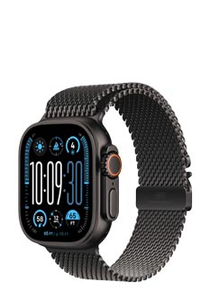 Watch Ultra 2 GPS + Cellular Maximum performance for sport and adventure The Apple Watch Ultra 2 is the ideal watch for athletes and adventurers. With its robust titanium housing and the brightest display to date (3,000 nits), it is designed for extreme conditions. It offers water resistance to 100 metres and protection against dust in accordance with IP6X. Action at your fingertips The programmable action button makes it easy to control your workouts, while the battery lasts up to 72 hours in energy-saving mode. Perfect for cyclists The Ultra 2 displays your cycling data live and can be connected to power meters so that you can view important measurements directly on your watch or iPhone. Swimming and diving adventures Whether in the pool or diving to a depth of 40 metres ? the watch tracks your activities precisely and is certified according to the EN13319 standard for diving accessories. Safely on every hike With functions such as backtrack and waypoints, you can navigate safely, even in remote areas. Offline maps and the integrated compass always get you reliably to your destination. Focus on health and safety From sleep analysis to ECG and cycle log ? the Ultra 2 provides comprehensive health monitoring. Emergency functions such as fall and accident detection offer additional safety. Always connected, worldwide With mobile communications and Apple Pay, you can always stay in touch, even without your iPhone. Features such as translations and music streaming ensure that you are well looked after when you are on the move. Compatible with: iPhone Xs or newer, including iPhone SE (2nd generation or newer), with iOS 18 or newer Colour Case: Black Titanium case, Black Titanium Milanese Loop Scope of delivery: Apple Watch Ultra 2 Milanese Loop M Apple Watch Magnetic quick charger to USB-C cable (1 m)