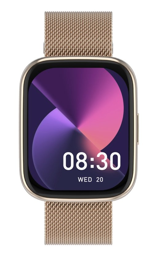 Screen: 1.3 inches, touch-sensitive, resolution 240x240 pixels.Connectivity: Bluetooth 4.0 to connect with devices.Features: Heart rate monitoring, step counter, sleep tracking.Battery: Up to 7 days of usage.Water Resistance: IP67 (protection against water and dust).Compatibility: Works with iOS and Android devices.Color: Rose Gold.