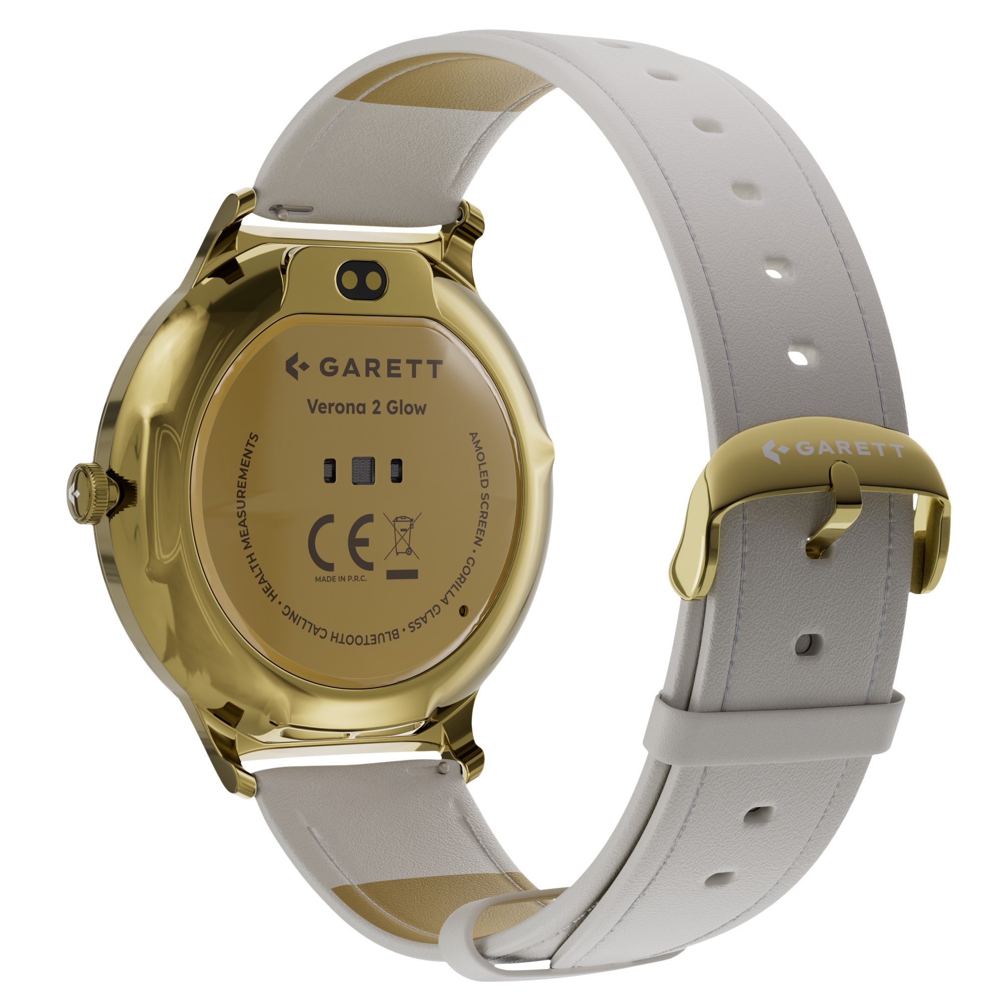 Modern Style and Refinement. The Garett Verona 2 Glow Gold Mesh steel is the perfect accessory for those who value elegance and functionality. The thin, gold-colored case and the stylish Milanese loop bracelet made of stainless steel create a light and sophisticated look. This model perfectly complements both everyday and evening attire, ensuring maximum comfort. Key Features and BenefitsVibrant AMOLED Display: Enjoy exceptional clarity and rich colors on the 1.3-inch AMOLED screen. The Always On Display function allows you to see the time and notifications without activating the display, which saves battery life. Extended Battery Life: With a 185 mAh battery, the watch works for up to 7 days in standard mode and up to 14 days in standby mode. You won't have to worry about frequent recharging. Comprehensive Health Monitoring: The watch is equipped with sensors to track your well-being. It measures heart rate, monitors sleep quality, and includes a menstrual calendar. Sports Modes: The built-in sports modes help you analyze your workouts, count steps, calories burned, and distance traveled. All data is saved in the app for easy progress tracking. Notifications on Your Wrist: Sync the watch with your smartphone via Bluetooth and get notifications for calls, messages, and social media events right on your wrist. Universal Compatibility: The watch seamlessly syncs with both Android and iOS devices. The lightweight (around 60 g) and thin (just 6.8 mm) case ensures maximum comfort during wear. Technical SpecificationsDisplay: 1.3" AMOLED Battery: 185 mAh Operating Time: Up to 7 days Memory: 64 MB Bracelet Material: Stainless steel (Milanese loop) Color: Gold Case Dimensions: 50 x 45 x 6.8 mm Weight: Approximately 60 g (with bracelet) Compatibility: Android, iOS Connectivity: Bluetooth Package Contents: Smartwatch, USB charging cable, user manual, warranty card. Lekkość stylu i technologia w kobiecej odsłonie Poznaj Verona 2 Glow – smartwatch zaprojektowany specjalnie dla kobiet, które chcą łączyć modę z nowoczesną funkcjonalnością. Ten ultracienki zegarek o grubości zaledwie 7,8 mm to nie tylko narzędzie, ale również elegancki dodatek do każdej stylizacji. Dostępny w dwóch wariantach – z delikatną bransoletą typu mesh lub klasyczną stalową – dopasuje się zarówno do codziennych stylizacji, jak i eleganckiego ubioru. Bransoleta i pasek w zestawie W zestawie znajdują się dwa paski: metalowa bransoleta (mesh lub stal w zależności od wybranego wariantu) oraz biały pasek ze skóry ekologicznej. Ich błyskawiczna wymiana pozwala dopasować zegarek do stylizacji dziennej lub wieczorowej – elegancja i praktyczność w jednym. Subtelny design i komfort noszenia Ultralekka koperta z zaokrąglonymi krawędziami idealnie przylega do nadgarstka, oferując wygodę przez cały dzień. Intuicyjne sterowanie za pomocą obrotowego przycisku pozwala na płynne przechodzenie między funkcjami bez dotykania ekranu – prosto i wygodnie. Wyświetlacz AMOLED Wyświetlacz AMOLED o przekątnej 1,43 cala oferuje intensywne barwy i ostrość, która zachwyca. Wypukłe szkło nadaje zegarkowi wyjątkowy, biżuteryjny wygląd, a tryb Always On Display subtelnie pokazuje godzinę – nawet przy wygaszonym ekranie. Szkło Gorilla Glass Wyświetlacz pokryto odpornym szkłem Gorilla Glass, które chroni przed przypadkowymi zarysowaniami i uszkodzeniami. Verona 2 Glow pozostaje olśniewająca – bez względu na tempo Twojego dnia. Rozmowy Bluetooth i Asystent Głosowy Wbudowany mikrofon i głośnik umożliwiają odbieranie połączeń prosto z nadgarstka. A dzięki integracji z asystentem głosowym, wykonasz wiele zadań jednym poleceniem – szybciej i wygodniej. Ponad 100 trybów sportowych Smartwatch wspiera ponad 100 różnych dyscyplin – od biegania i treningów siłowych, po jogę i taniec. Śledzi kroki, kalorie i postępy, a wszystkie dane trafiają do aplikacji Garett Smart, dzięki której łatwiej zadbasz o kondycję i zdrowie. Pomiary zdrowotne Verona 2 Glow dba o Twoje zdrowie każdego dnia. Mierzy tętno, ciśnienie, saturację, poziom stresu oraz analizuje sen. Dodatkowo oferuje ćwiczenia oddechowe i prowadzi kalendarz cyklu menstruacyjnego – bo dobre samopoczucie to podstawa. Bateria, która nadąża za Tobą Do 7 dni pracy na jednym ładowaniu i szybkie uzupełnianie energii przez podstawkę z portem USB-C. Bez zbędnych przerw – Verona 2 Glow zawsze gotowa do działania. Pełna kontrola z aplikacją Garett Smart Zarządzaj funkcjami zegarka i przeglądaj statystyki w dedykowanej aplikacji Garett Smart, dostępnej dla systemów Android i iOS. Zmieniaj tarcze, śledź postępy i miej wszystko pod ręką – kiedy tylko chcesz.