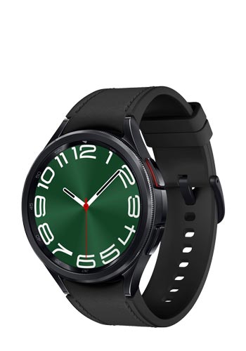 Galaxy Watch6 Classic Slimmer edge, more screen With the up to 20% larger display, you have even more space to take in everything at once. The up to 30% slimmer black screen edge enables the largest screen in the Galaxy Watch series to date and more room for self-expression with customisable watch faces. One-click strap change From workout to party style in the blink of an eye: One press of a button is all it takes to detach your strap from the case so you can change it. The quick-release spring bar makes it easy to change the strap, with a satisfying click when it snaps into place. Discover the sapphire crystal display Ready for use in any weather: The high-quality sapphire crystal ensures a resistant and robust display. Thanks to protection classes IP68 and 5ATM, you can take on almost any adventure with your watch. Quiet nights, productive days Relax overnight so you can get the most out of your day. Wear your Galaxy Watch6 while you sleep and keep track of your nightly sleep stages, levels and consistency to optimise your sleep habits. And now you can access the sleep analysis function directly on your watch, so you can get tips straight to your wrist. Fitness tracking ? Time for great achievements Record your every physical activity and progress with the Galaxy Watch6. It supports over 90 different training programmes, including indoor swimming and yoga, which you can easily track. You can also create your own personalised workout. If you forget to press start, the smartwatch is able to recognise this and automatically saves selected workouts such as jogging, walking and now also cycling so that you don't lose any valuable data. Seamless multitasking Get more out of your Galaxy Watch6 with the Galaxy Z Flip5, Galaxy Buds2 Pro and Galaxy Tab S9 series. Discover the seamless interaction of your Galaxy products and improve your productivity, fitness and creativity. Colour: Black Scope of delivery: Galaxy Watch6, Fast Wireless Charger, Sport Band, Quick Start Guide
