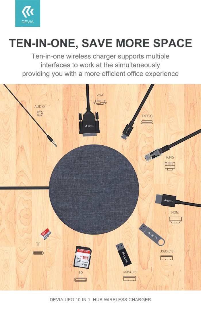 Devia UFO 10in1 HUB wireless charger gray (120EH0250001)