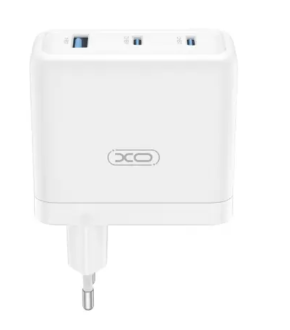 The XO CE35 is a compact and powerful GaN wall charger ideal for fast charging laptops, phones, tablets, and more. It features two USB‑C ports and one USB‑A port, making it versatile for both home and travel use. Technical Specifications: Input: 110–240 V AC, 50/60 Hz, up to 2 A Ports: USB‑C1/USB‑C2: up to 100 W each (5V/3A, 9V/3A, 12V/3A, 15V/3A, 20V/5A) USB‑A: up to 27 W (5V/3A, 9V/3A, 10V/2.25A, 12V/2.25A) Multi-port output: C1 + C2: 65 W + 27 W C1 + A: 65 W + 27 W C2 + A: approx. 24 W Supports: USB‑C PPS, PD 3.0, QC 3.0, FCP, AFC, and more Build material: durable PC plastic Color: white