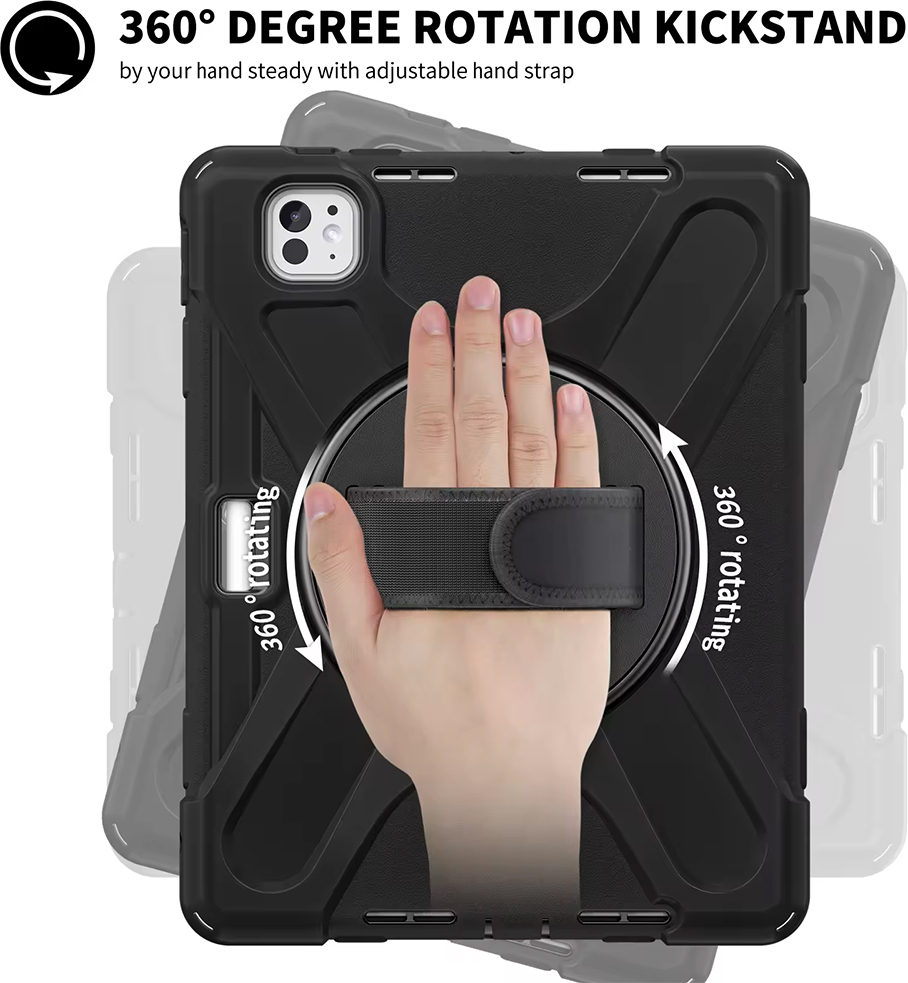 Tough protective case for iPad Pro 11" 2024 with double protection. The dual-layer construction consists of an impact-absorbing polycarbonate layer combined with a flexible rubber layer for additional cushioning.