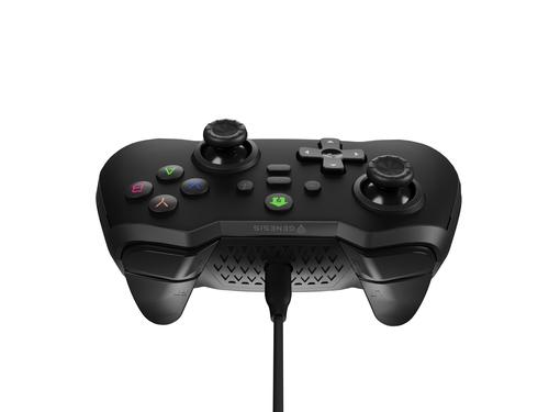 The pad is comfortable and will serve you for a long time. This is thanks to the illuminated buttons, which are made using Double Injection technology. This ensures that their imprints will not wear off even after years of use. The rubberised grips also contribute to the comfort of playing, preventing the controller from slipping - even during the most exciting gameplay.GENESIS Mangan 300. Device type: Gamepad, Gaming platforms supported: Android, Nintendo Switch, PC, Gaming control function buttons: D-pad, Home button, Mode button, Select button, Start button, Turbo button. Connectivity technology: Wired, Device interface: USB, USB connector type: USB Type-C. Product colour: Black, Cable length: 2 m. Power source: Cable. Windows operating systems supported: Windows 10, Windows 11, Windows 7, Windows 8, Mobile operating systems supported: Android