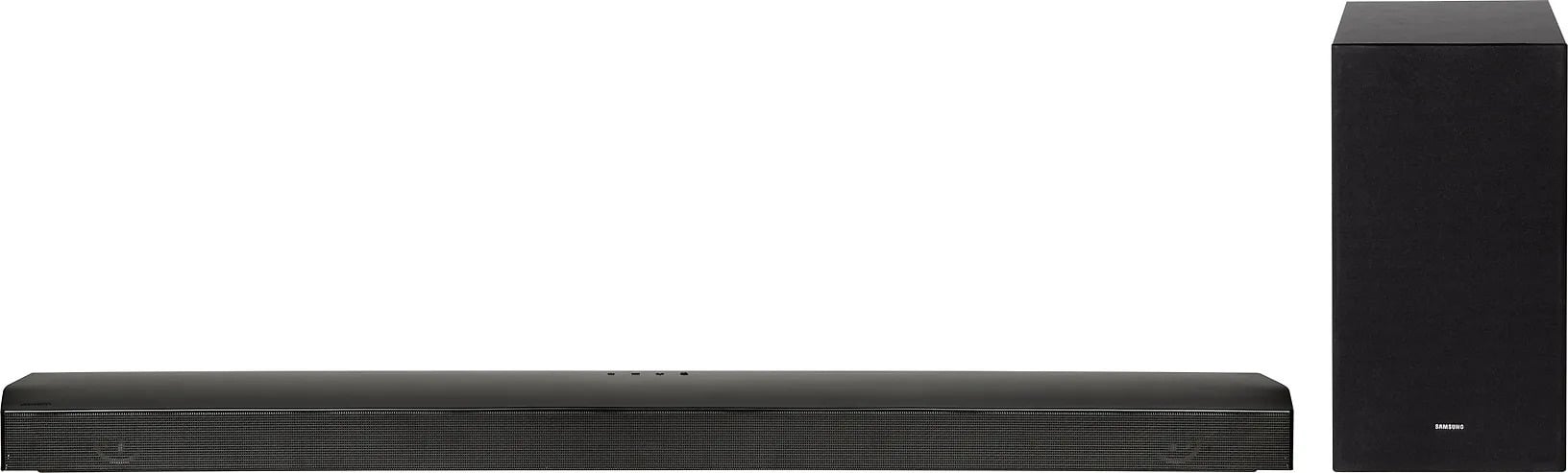 The Samsung HW-B750F soundbar brings a cinema-like 5.1 channel sound experience to your home. Built-in side speakers and a wireless subwoofer create a balanced and versatile soundfield that fills the room from every direction.