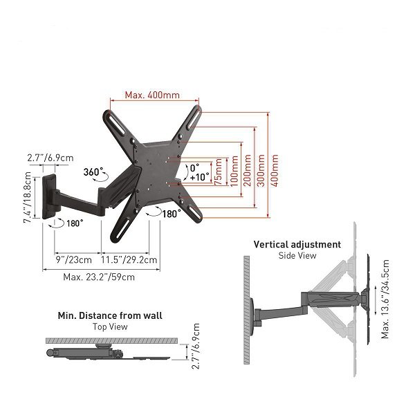 Nedis TVWM2732MBK seinakinnitus LED / LCD / plasma telerile / 23 - 55" / Maks. 30kg