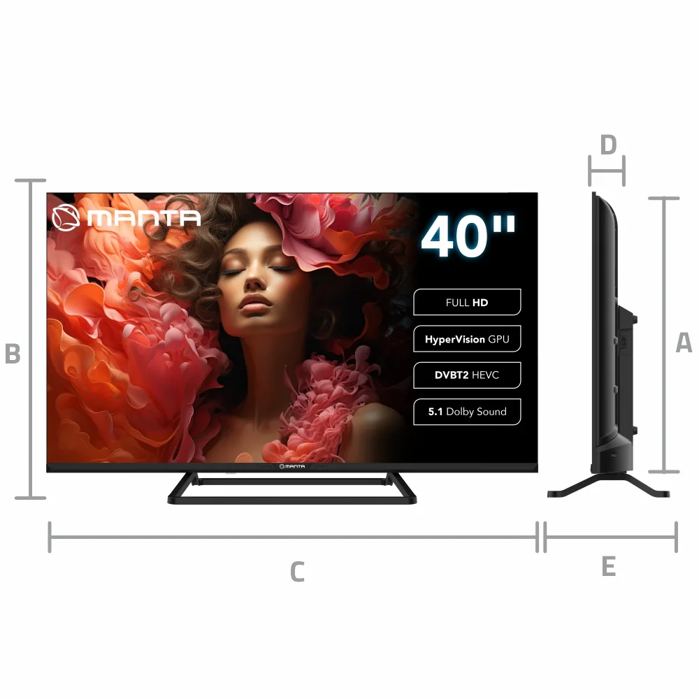 Optimized SMART system based on VIDAA Dual tuners: SAT and DVB-T2 Frameless design for a modern, borderless look Powered by a quad-core processor Equipped with the latest HyperVision GPU software supporting VA (Vertical Alignment) graphics technology FHD LED panel for sharp and vibrant visuals Dolby Digital Plus 5.1 surround sound HDMI ports with CEC and ARC support Pre-installed with major apps for streaming movies, series, and entertainment Includes Hotel Mode for professional or commercial use