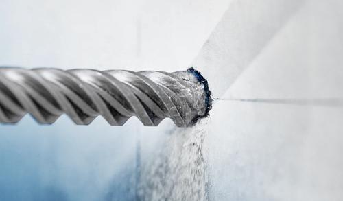 Drilling through reinforced concrete is a tough job and it has traditionally taken its toll on hammer drill bits. Even 4-cutters wear out fast, resulting in downtime changing accessories and fetching supplies. The Full Carbide Head on the EXPERT SDS max-8X is an advanced 4-cutter design made from a single piece of the toughest metal: It doesn’t jam and presents no weakness on impact.