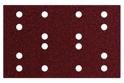 Metabo Hook and loop sanding sheets 80 x 133 mm, P 80, 16 holes, with hook and loop (SRA) (635192000). Type: Sanding sheet, Suitable for materials: Metal, Polyester, Stainless steel, Steel, Wood, Product colour: Red. Length: 133 mm, Width: 80 mm. Quantity per pack: 10 pc(s)