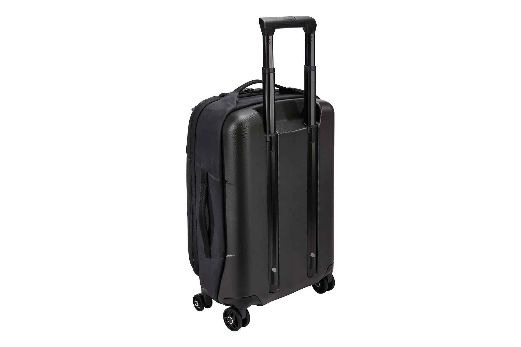 Features Includes a removable compression packing cube with a TPU lining that separates odor, moisture, and dirt from the rest of the bag and doubles as a day bag Oversized rear wheels effortlessly glide over rough terrain and smaller, recessed front wheels increase interior space Patented V-tubing telescoping handle is smooth and easy to pull Convenient front pocket helps stash a jacket on the go Zippered exterior pocket provides quick access to keys, wallet, and smaller items The interior mesh pocket that divides the main compartment keeps items separate and secure during travel Durable exoskeleton with a polycarbonate back panel helps absorb the impact of travel Exterior zipper sliders can be locked together for added security (locks sold separately) Compliant with most airlines carry-on requirements Outer shell fabric, lining, and mesh are made of 100% recycled polyester from recycled plastic bottles while the polycarbonate back panel is made of 50% recycled material The 600D waxed canvas shell fabric is highly durable and includes a water-resistant coating free of toxic PFCs that repels moisture, dirt, and stains All Thule Aion products are bluesign® certified Technical data Dimensions (L x W x H): 35 x 23 x 55 cm Weight: 3.250 kg Volume: 35 L Color: Black Material: Waxed P600 Polyester Canvas