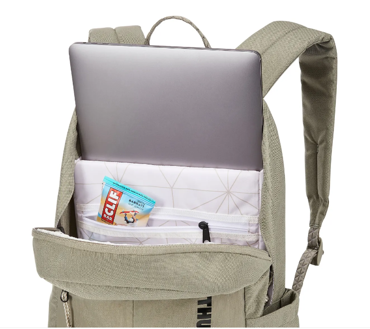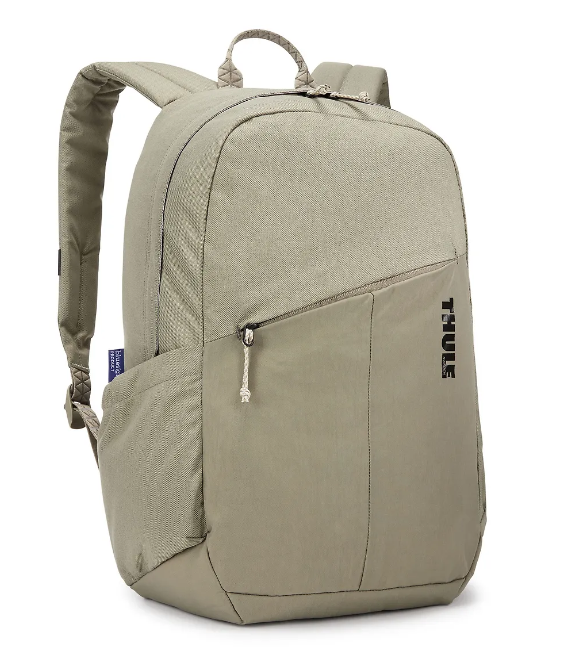 Thule Notus Backpack TCAM-6115 Vetiver Gray (3204769) Features Protect laptop up to a 14", PC or 16" MacBook® in the elevated, padded pocket. Made with bluesign® approved, 100% recycled 600D Polyester and 400D nylon fabrics. Zippered interior pocket keeps small accessories and pens secure and easy to locate. Two side pockets allow for easy storage of water bottles, power cords, and other accessories. Slip pocket allows for quick access to snacks or a key card. This backpack meets the bluesign® criteria. Made of bluesign® approved fabrics and accessories and produced in a resource conserving way with a minimum impact on people and the environment. The durable design includes a padded base panel and YKK zippers. Custom details include a geometric pattern lining, tri-colored cord puller accent, and an embossed pattern on the shoulder strap, webbing, and handle. Technical details Dimensions (L x W x H): 30.0 x 22.0 x 45.0 cm Weight: 0.57 kg Volume: 20 L Color: Vetiver Gray Material: 600D Polyester, 400D nylon