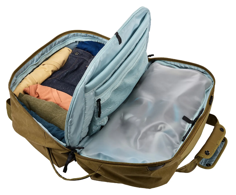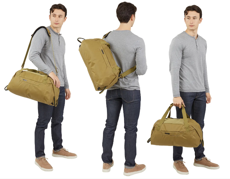 Thule Aion duffel bag 35L Nutria (3204726) Description A duffel bag for work, travel, and sports. Features The easy-to-clean TPU-lined compartment separates damp or dirty items from the rest of your gear and tucks away when not in use The internal divider separates the duffel into two different packing sections and also has storage space for laptop, chargers, and other electronics Removable, padded shoulder straps convert the bag from a standard duffel to a crossbody carry External stretch pockets on the top of the bag provide quick and easy access Dedicated storage protects a 15.6" PC/16" MacBook and 12.9" tablet Internal zippered pocket stores a phone, charger and other small items during travel Pass-through panel secures the duffel to rolling luggage Outer shell fabric, lining, and mesh are made of 100% recycled polyester from recycled plastic bottles The 600D waxed canvas shell fabric is highly durable and includes a water-resistant coating free of toxic PFCs that repels moisture, dirt, and stains All Thule Aion products are bluesign® certified Technical specifications Dimensions (L x W x H): 52 x 32 x 30 cm Weight: 1.090 kg Volume: 35 L Color: Nutria Material: Waxed P600 Polyester Canvas Model name: TAWD135 Model number: 3204726 Collection: Thule Aion Collection