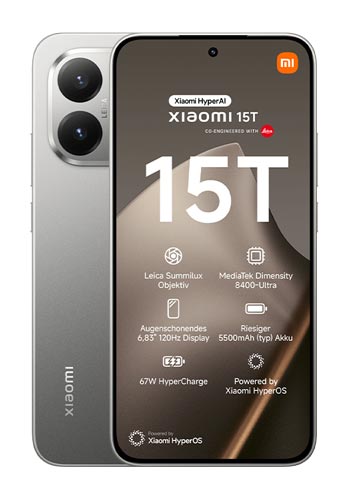 Xiaomi 15T | Harmaa | 17.3 cm | 120 Hz silmienhuolto | 2772 x 1280 pikseliä | Mediatek | D8400-Ultra | Sisäinen RAM 12 GB | 256 GB | Dual SIM | 5G | Pääkameran resoluutio 50+50+12 MP | Sekundary kameran resoluutio 32 MP | Android | 5500 mAh 68156 € 656.40