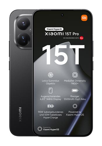 Xiaomi 15T | Musta | 6,83" | 120 Hz silmienhuolto | 2772 x 1280 pikseliä | Mediatek | D8400-Ultra | Sisäinen RAM 12 GB | 256 GB | Dual SIM | 5G | Pääkameran resoluutio 50+50+12 MP | Sekundary kameran resoluutio 32 MP | Android | 5500 mAh 68152 € 656.40