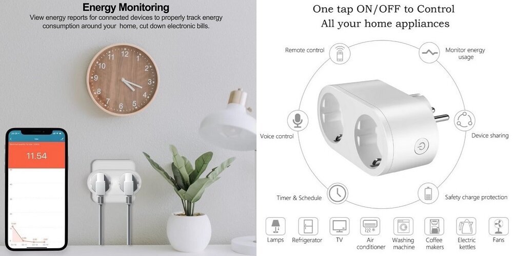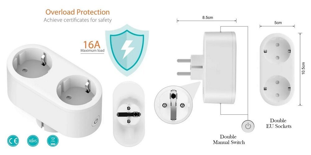 Tuya HS084134 Kaksikanavainen Wi-Fi-pistorasia