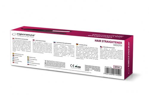 Esperanza EBP001. Type: Straightening iron, Technology: Warm, Temperature (max): 200 °C. Product colour: Black, White. Power: 35 W, AC input voltage: 230 V, AC input frequency: 50 Hz
