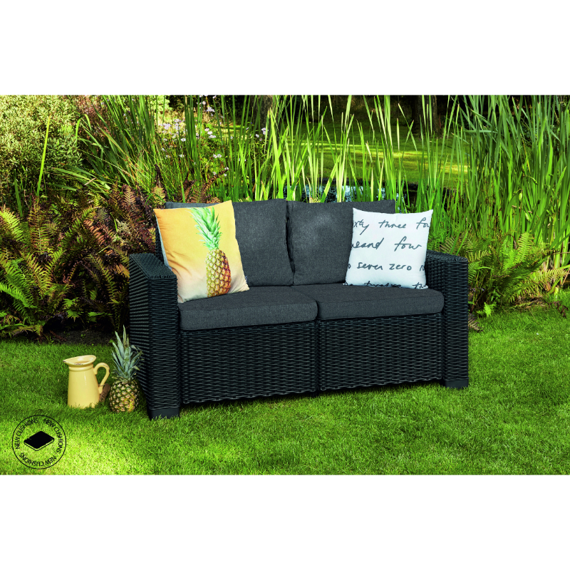 The California Sofa double sofa will transform your garden or terrace into a luxurious outdoor living area. With a stylish curved wicker texture, extra-wide armrests and deep seat and back cushions, this sofa transforms your garden into an outdoor oasis where you can relax with friends or enjoy moments of privacy.The furniture set is made from high-quality plastic that is weather- and UV-resistant. This means you can use this furniture for many years without worrying about maintenance or replacement.Quick and easy to assembleCan be combined with other furniture from the same series.Size: 141 x 68 x 72cmPacking size: 120 x 70 x 42cmWeight: 20kg*Colour of item may vary from picture. Product description is general and does not necessarily cover all product features.Prices of products in the e-shop may differ from prices in supermarkets and service centres.