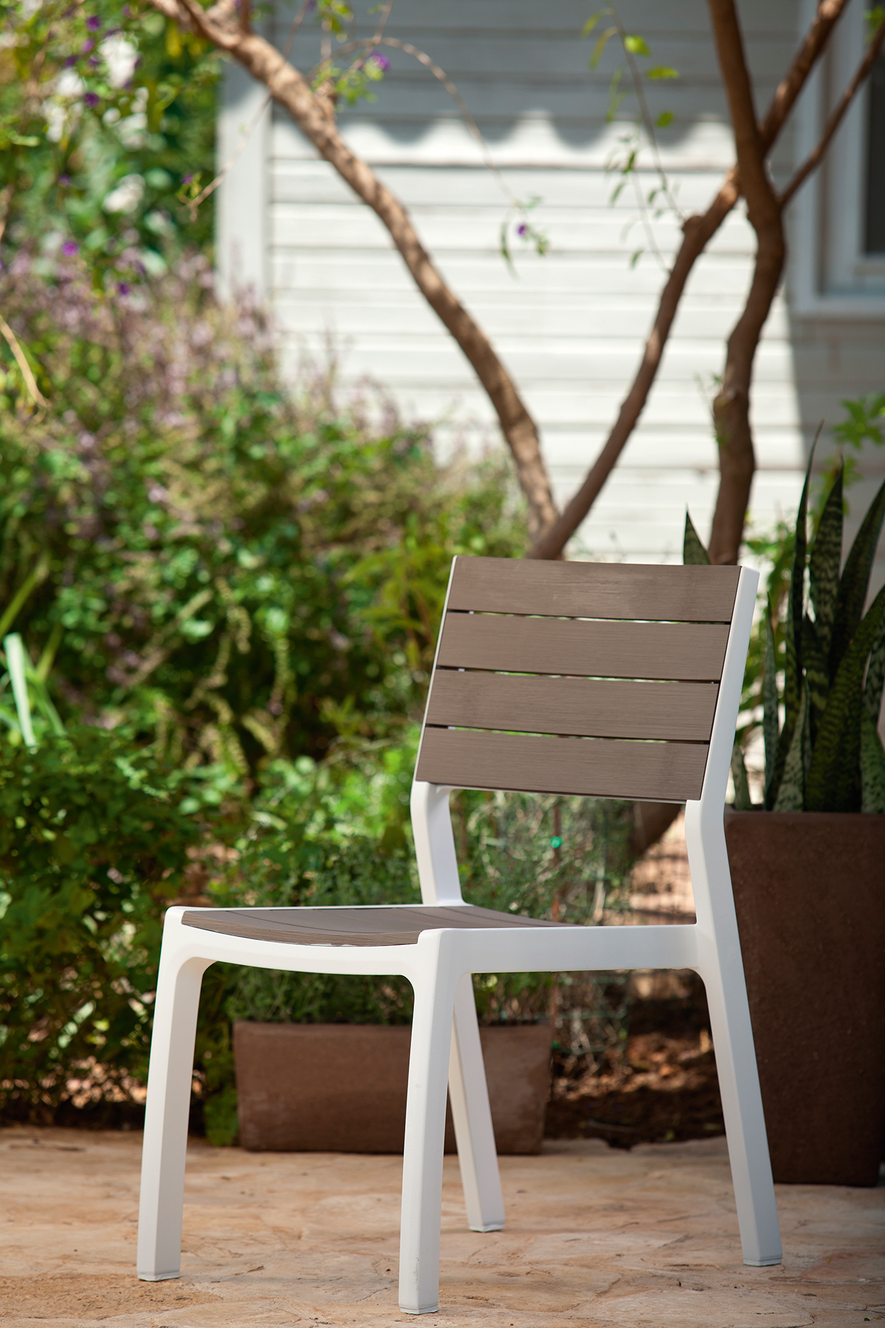 TheHarmony chair is modern in shape and very comfortable to use.This chair is the perfect addition to your home, garden or terrace, it will refresh your interior. It has a comfortable backrest and seat, as well as a panelled seat top that visually resembles a woody texture.These chairs will be easy to care for and are weather-resistant.Size: 47 x 60 x 86cmWeight: 3.7kg*Colour may vary from the picture. Product description is general and does not necessarily cover all product features. Product prices in the e-shop may differ from prices in supermarkets and service centres.