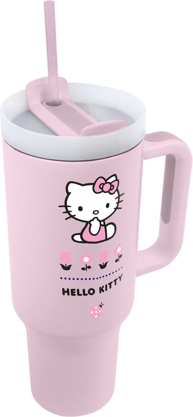 Stainless steel 1.2 litre Hello Kitty mug to keep your drink cold or warm.