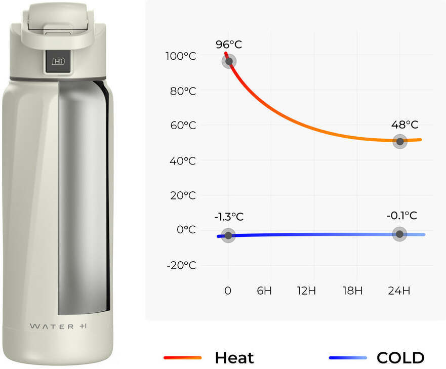 In addition to its smart features, WaterH Boost is a high-quality, durable water bottle. The triple stainless steel construction keeps your drink hot or cold for up to 24 hours. You can use the bottle not only for water, but also for coffee, tea or juice.