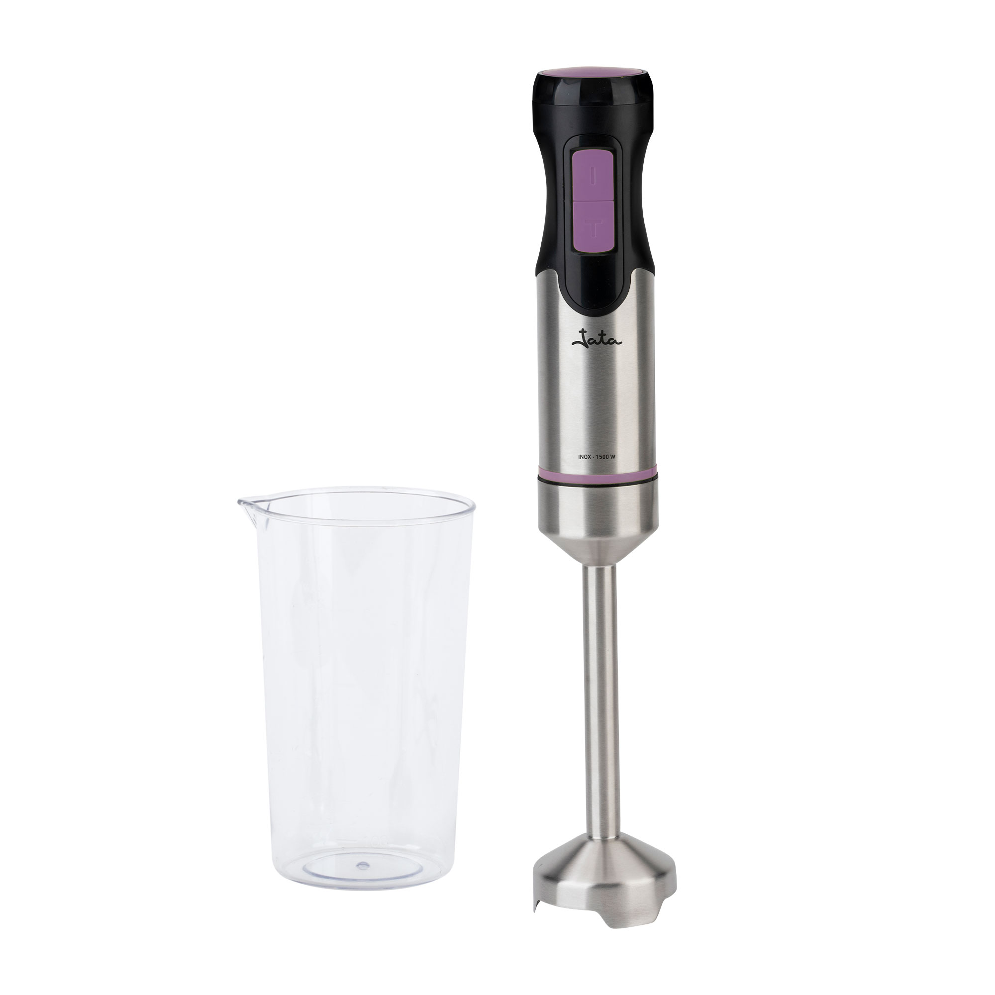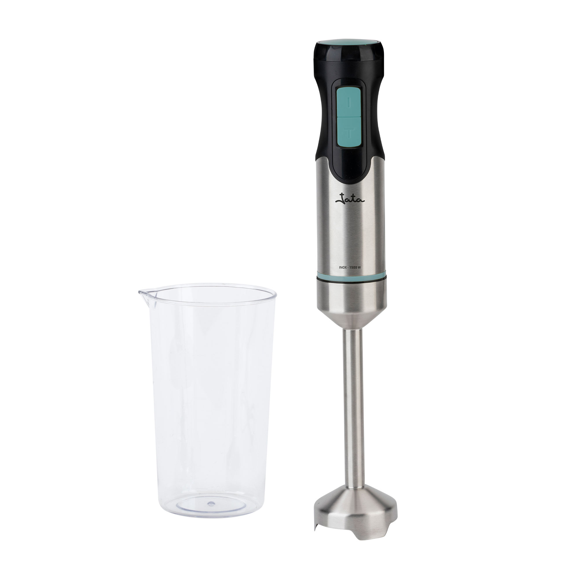 High power of 1,500 W Electronic speed regulator. TURBO function. Double stainless steel blade of great solidity. Ergonomic handle. Detachable stainless steel foot. Measuring cup included, 700 ml. RPM: 18000+/- 10% Voltage 230 V Power 1500 w Whisk, chop and blend. 18000 ± 10% RPM *Color is assigned according to available stock.