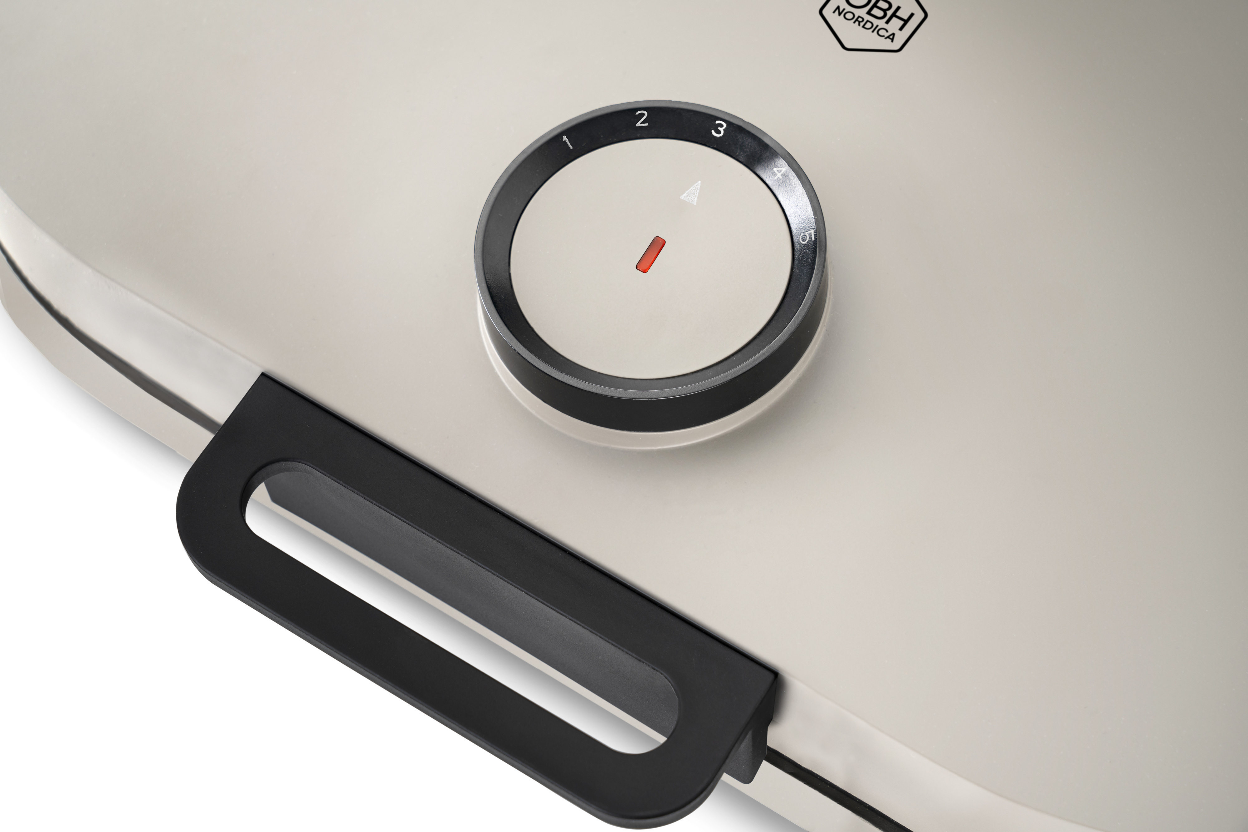 The Electa Double waffle iron heats up quickly with its 1,200 watt power, so you can start baking right away. With the adjustable temperature, you can choose from five different cooking levels to get just the right crispness and golden brownness for you. The high temperature ensures that the waffles are evenly crispy and beautifully coloured. The non-stick ceramic coating on the baking surfaces makes cleaning effortless, so the iron stays looking good for a long time.